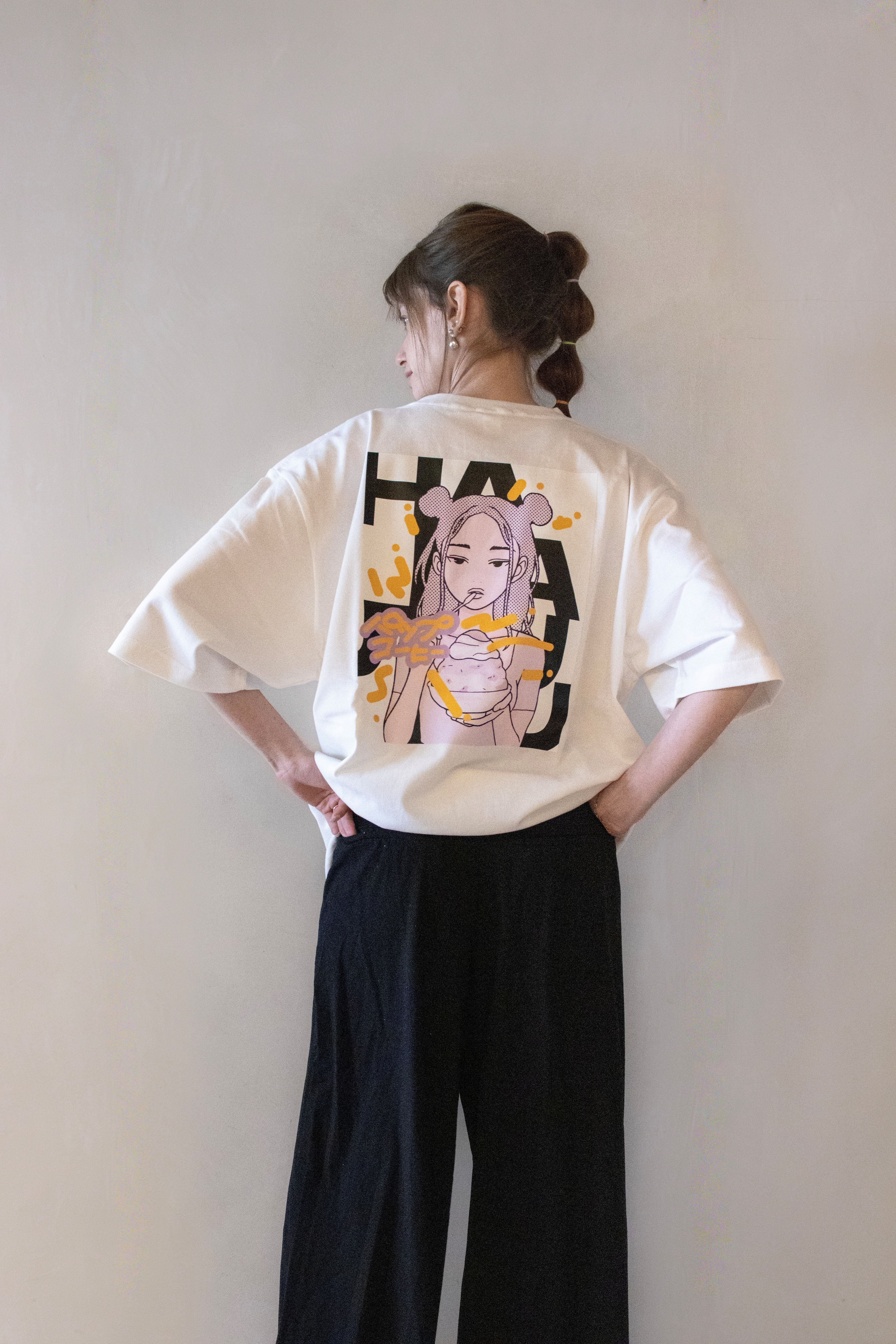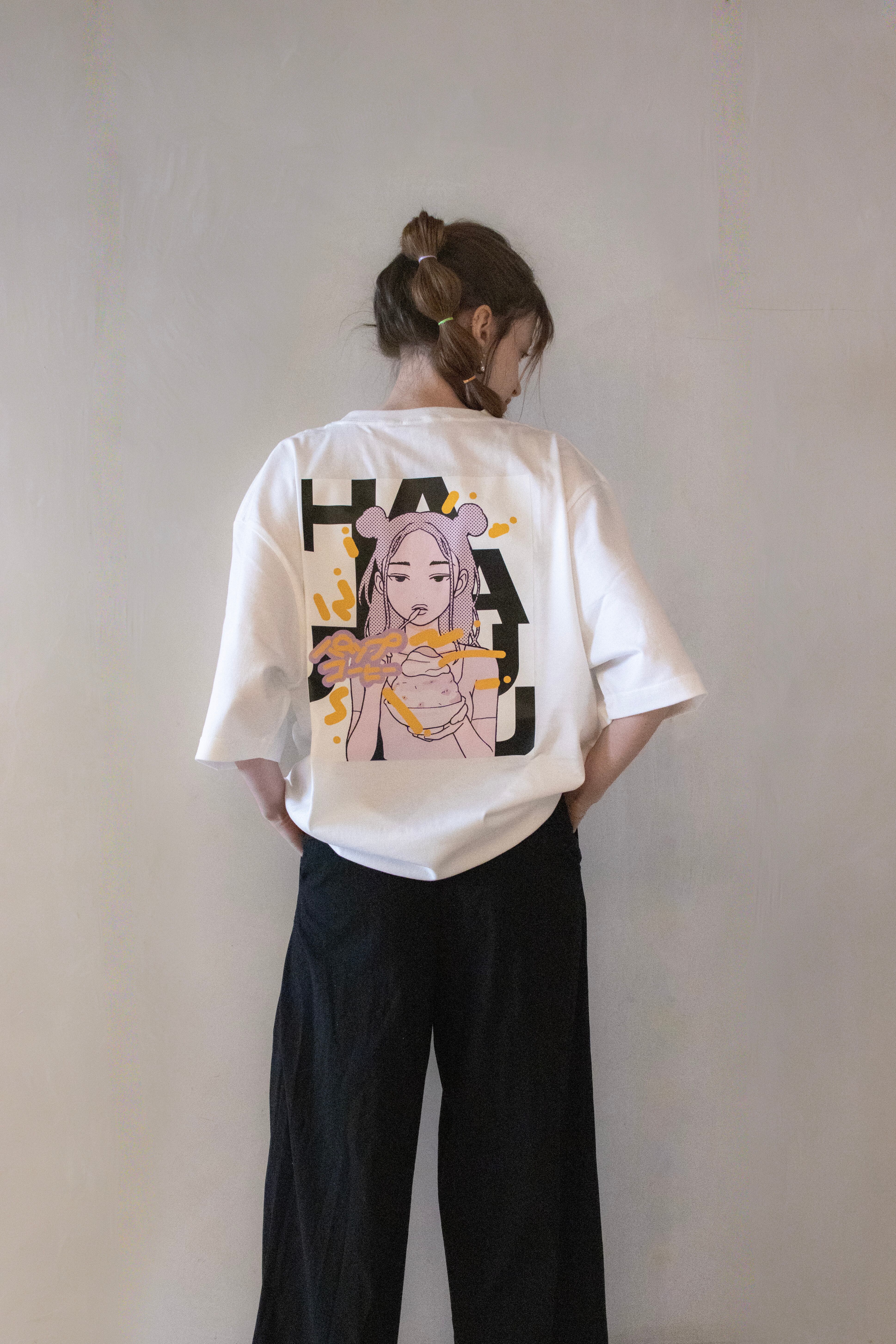 このTシャツのデザインは、原宿のストリートカルチャーからインスパイアされたもの。かき氷を大胆にプリントすることで、オリジナリティ溢れる仕上がりになりました。シンプルなホワイトのベースカラーは、どんなコーディネートにも合わせやすく、ユニセックスで楽しむことができるアイテムです。