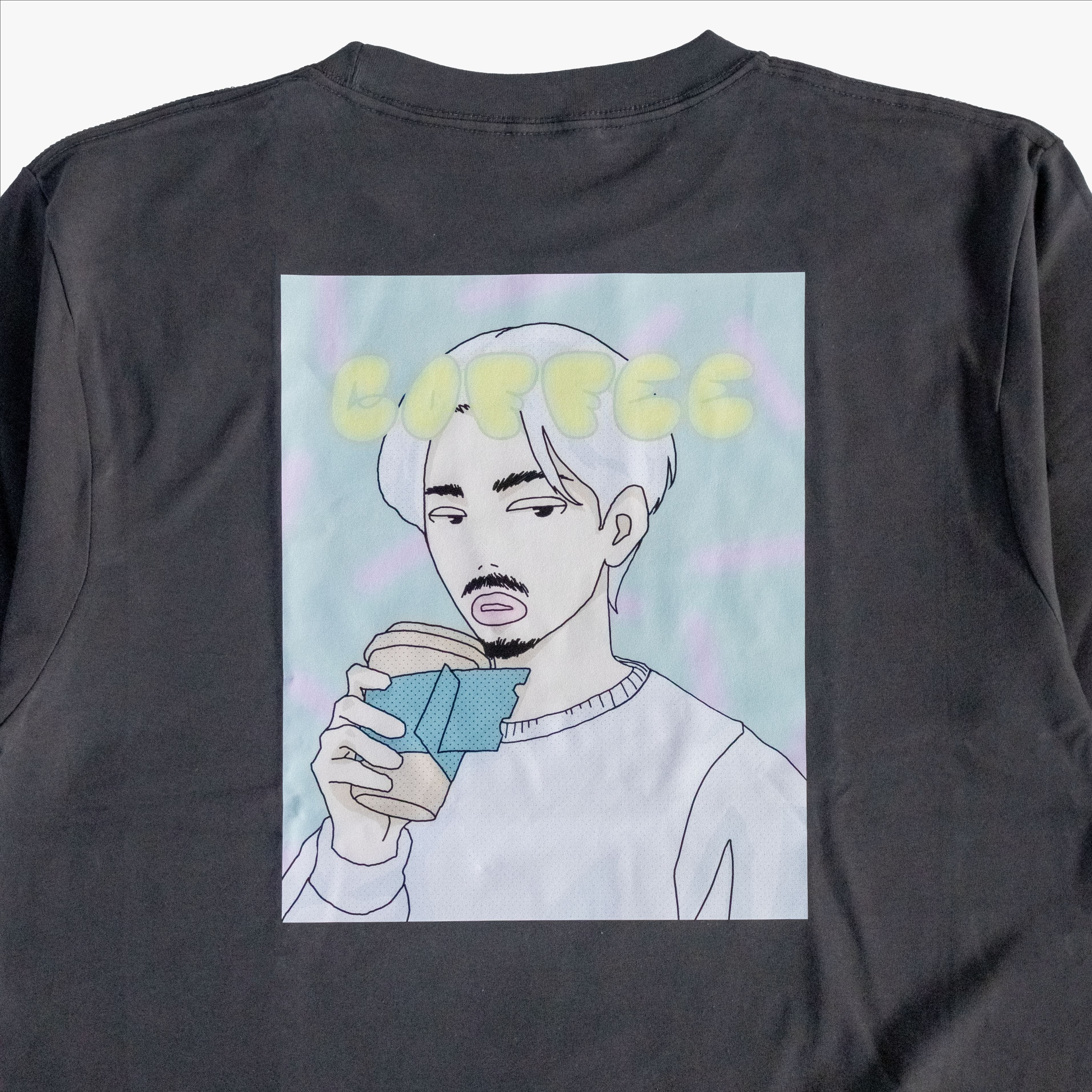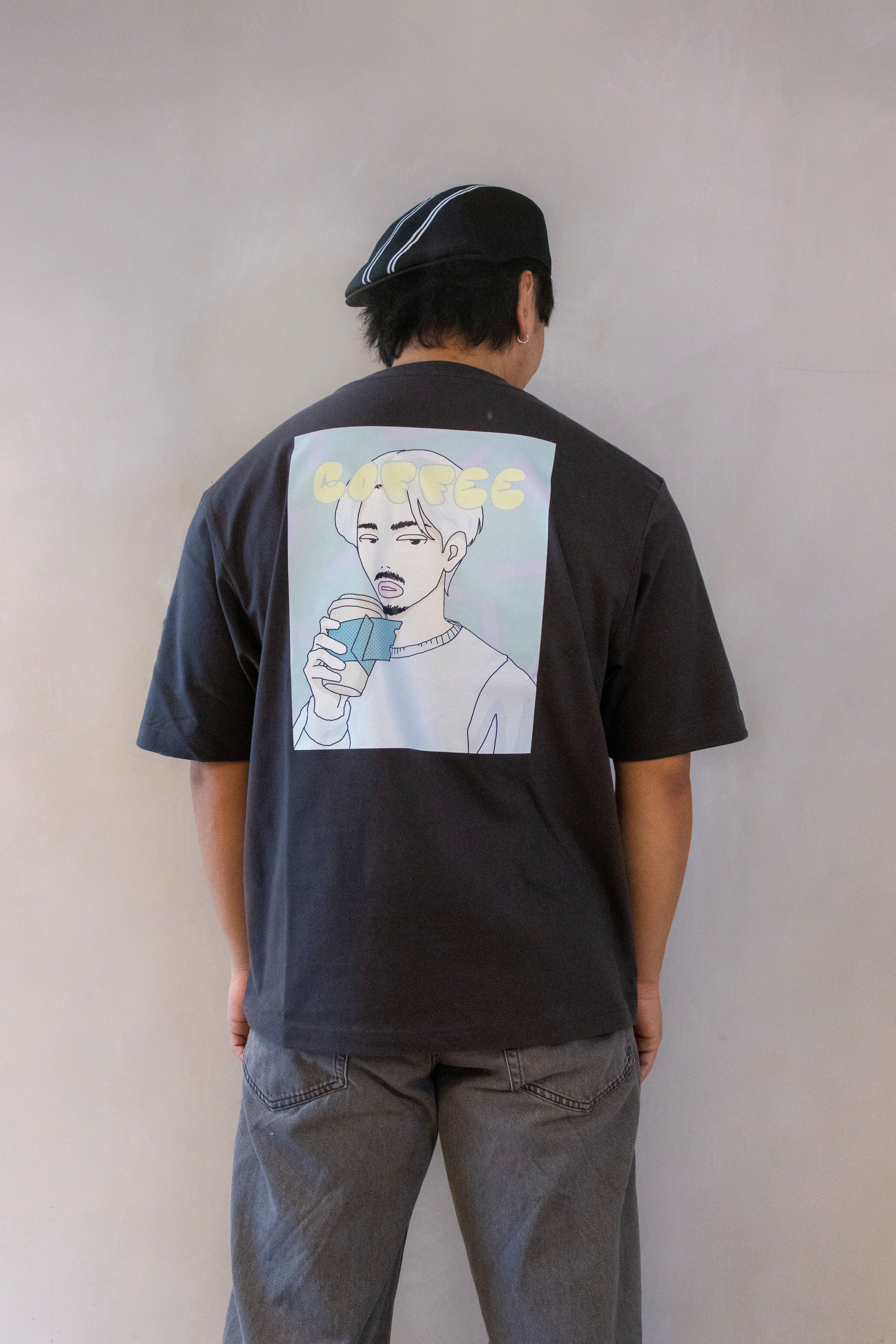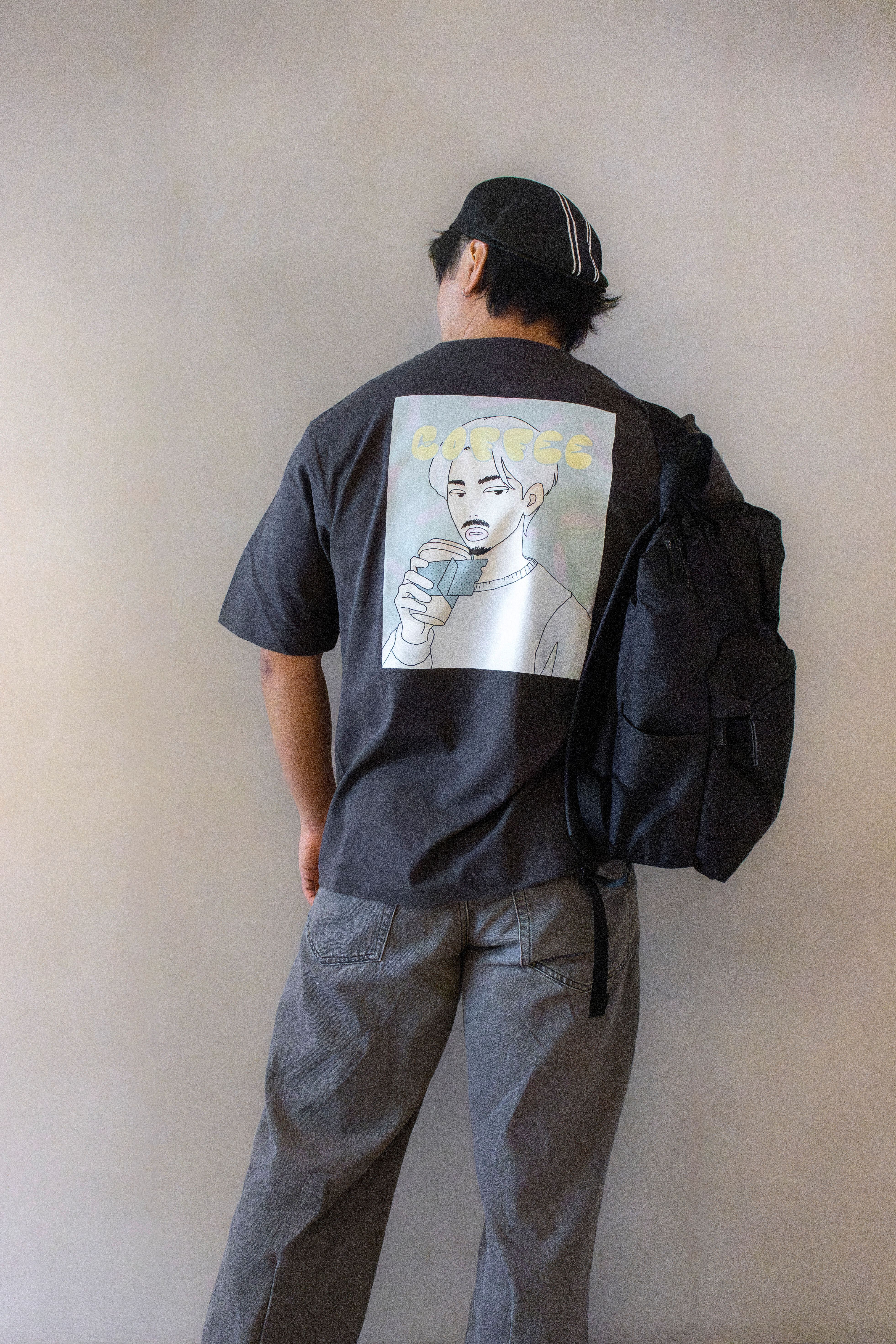 このTシャツのデザインは、原宿のストリートカルチャーからインスパイアされたもの。PAP.COFFEEのペーパーカップをもったキャラクターを大胆にプリントすることで、オリジナリティ溢れる仕上がりになりました。シンプルなスミクロのベースカラーは、どんなコーディネートにも合わせやすく、ユニセックスで楽しむことができるアイテムです。