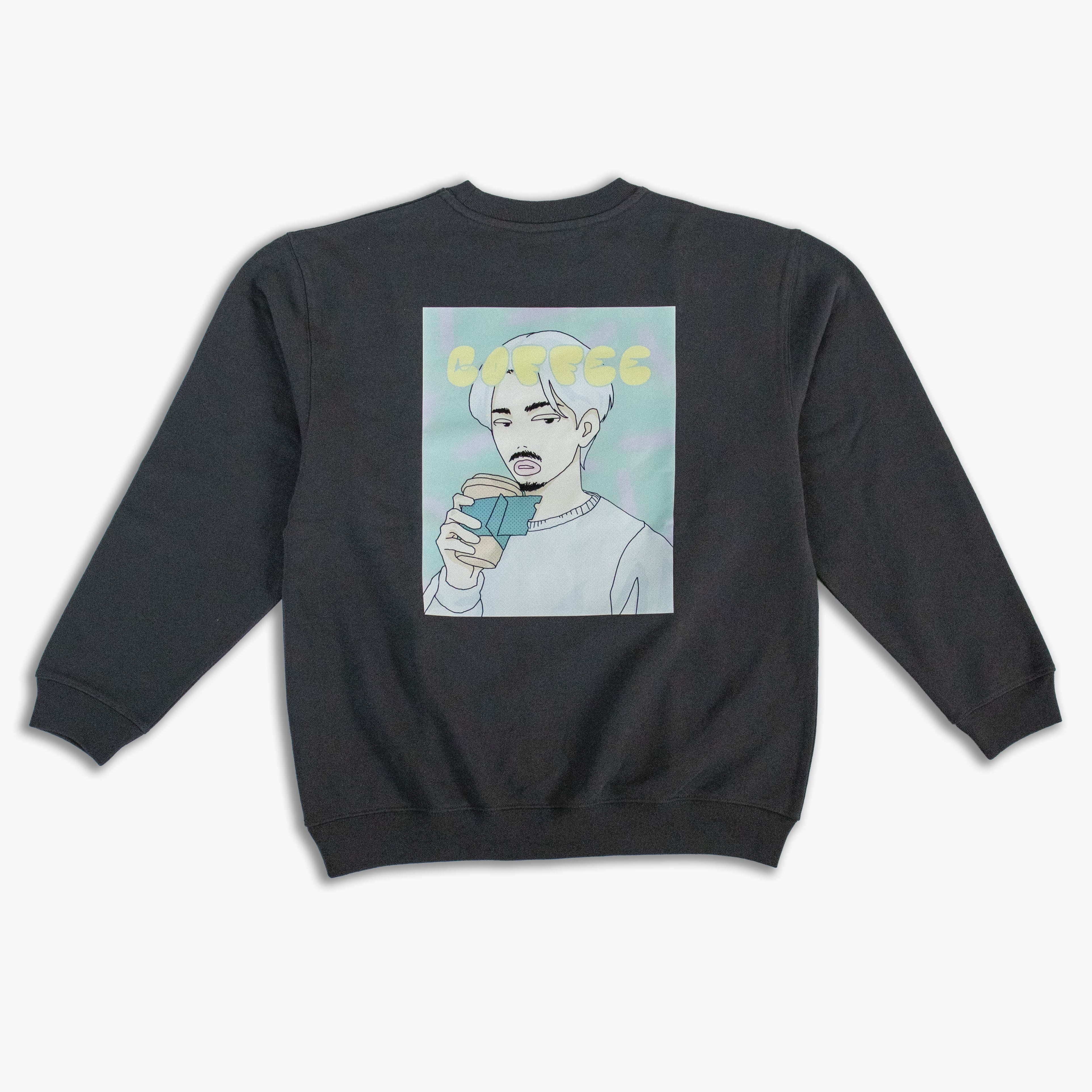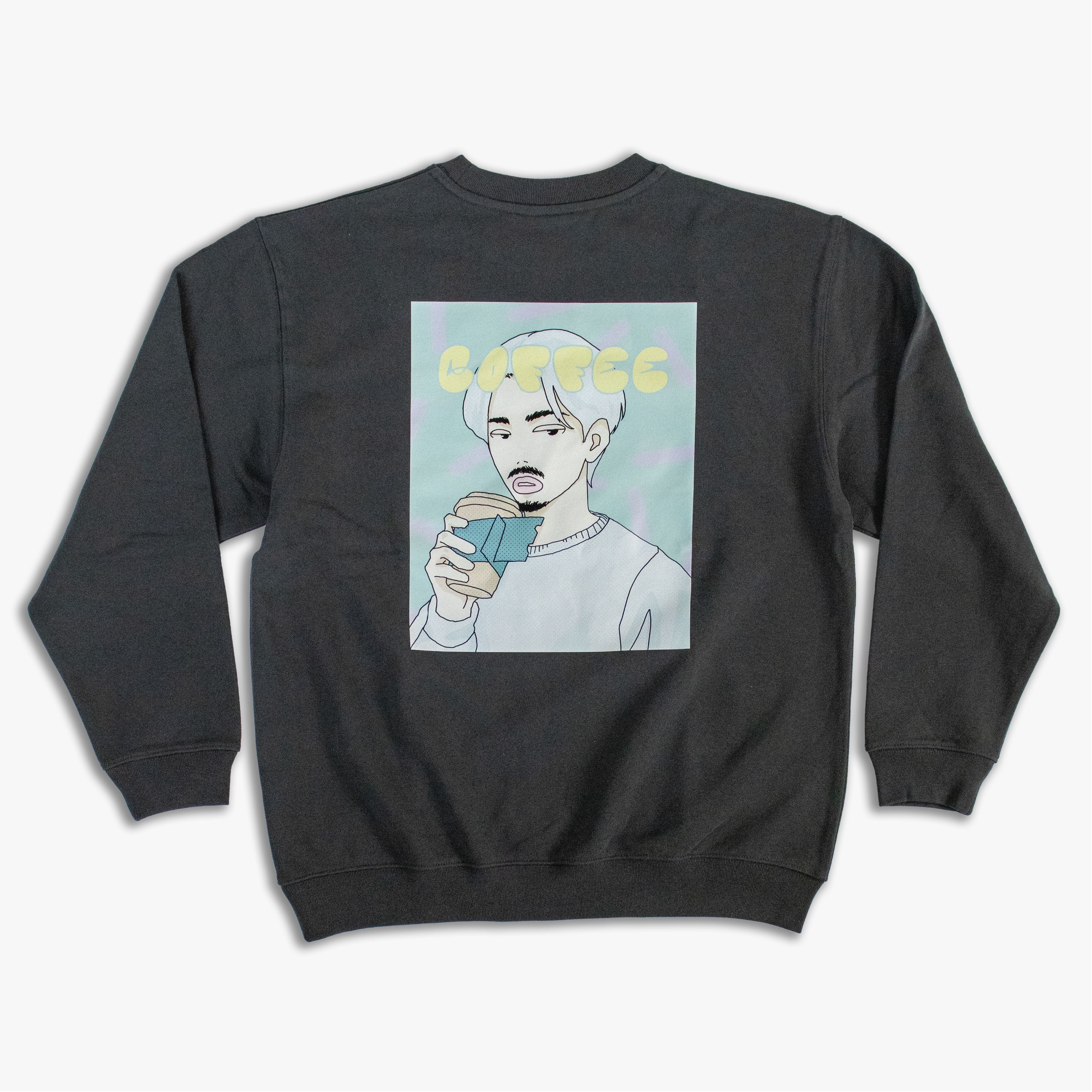 特徴:PAP.COFFEEのカップスリーブがついた紙コップを持つキャラクターデザインが施された、原宿らしいストリートカルチャーを感じるスウェット